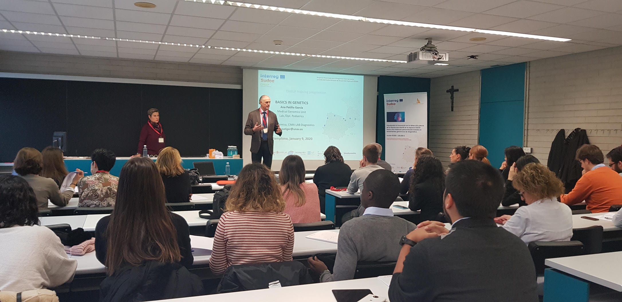 Los pasados 9 y 10 de enero, la Universidad de Navarra organizó la primera edición del programa de formación GHELP. El objetivo era transferir el conocimiento generado actualmente sobre el diagnóstico genético de la pérdida de audición a profesionales médicos europeos. Esta formación es pionera en Europa. Entre otras, se realizaron sesiones sobre genética, audiología infantil, tipos de hipoacusia, causas de hipoacusia genéticas y no genéticas, genética molecular de la hipoacusia, características de los programas de detección precoz de la hipoacusia en recién nacidos y ventajas y desventajas de la identificación de variantes mediante técnicas clásicas como la secuenciación Sangre/MI PA versus secuenciación masiva de segunda generación (NGS). El evento ha tenido una gran acogida con la asistencia de más de 45 profesionales de España y Portugal. Los contenidos formativos, en inglés, estarán disponibles próximamente en la página web del proyecto.
