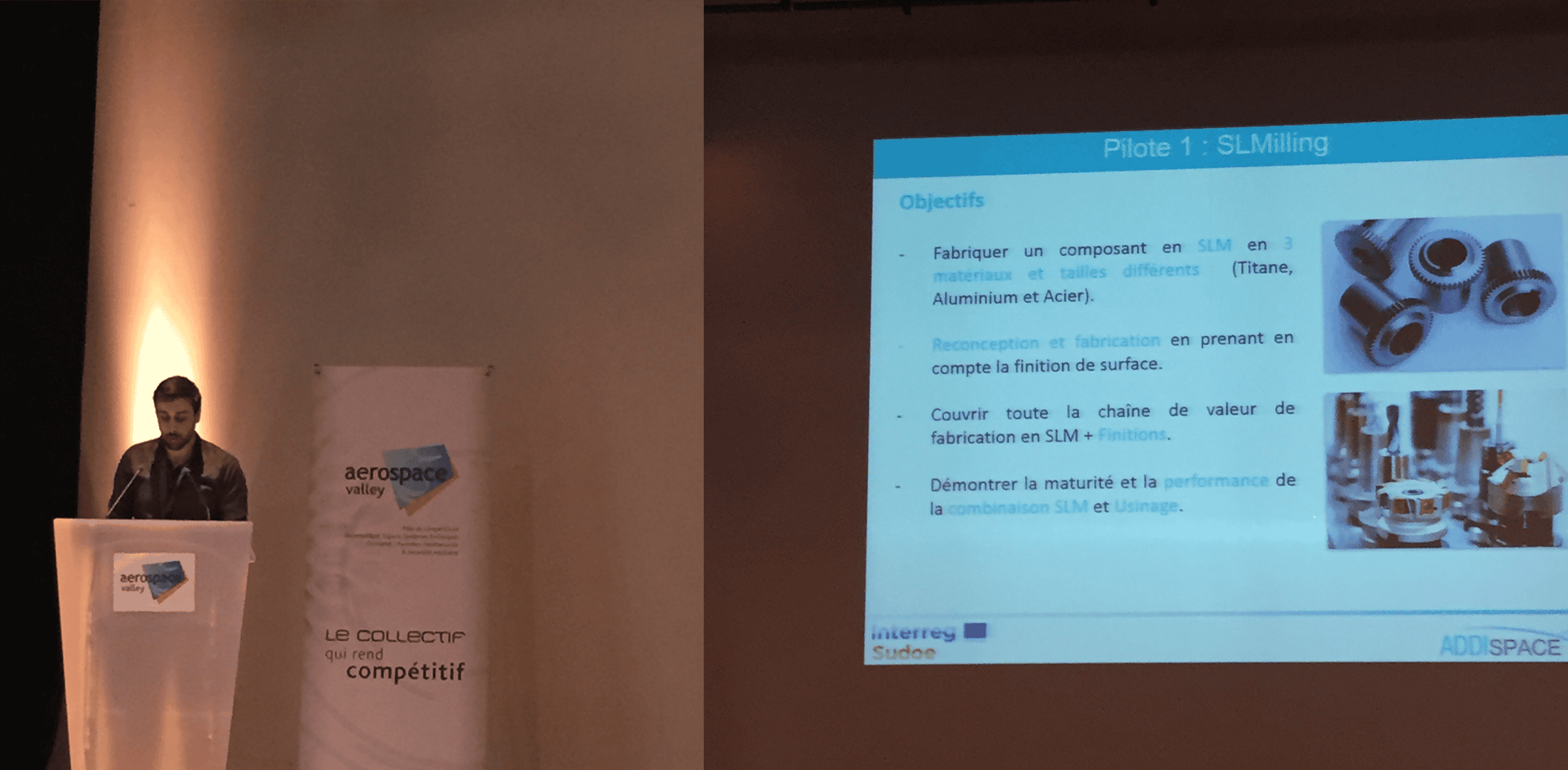 El pasado 17 de mayo, en el marco de la XII edición del Forum Technique d'Aerospace Valley, tuvo lugar el primer taller de transferencia del proyecto ADDISPACE. En este contexto, ESTIA (École Supérieure des Technologies Industrielles Avancées, realizó una presentación del proyecto y de sus primeros resultados. Fruto de estos últimos, se publicará próximamente un informe del diagnóstico del estado del arte y capacidades de los agentes del territorio Sudoe en el sector de la Fabricación Aditiva Metálica y en concreto su potencial aplicación al sector aeroespacial. Asimismo, se difundirá el informe sobre la encuesta  realizada a empresas del sector aeronáutico y empresas relacionadas con la fabricación aditiva, en la que se vislumbra el potencial real de dichas tecnologías.