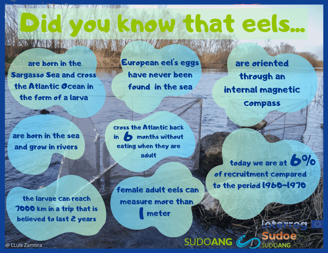 Protecting biodiversity is one of the key themes for the future of the Sudoe’s area. Discover all our projects in the field here. Moreover, if you want to know more about eels, we are waiting for you on the SUDOANG website.